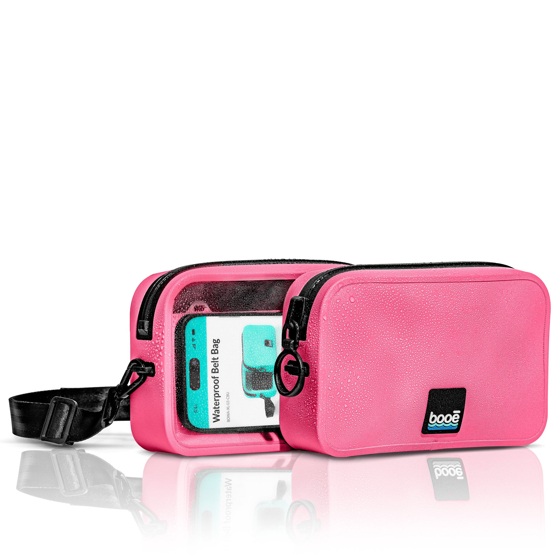 Meet the new and improved Waterproof Belt Bag - our largest belt bag yet to better accommodate those bigger phones with various cases. This waterproof fanny pack has a dedicated interior phone pocket with a mobile friendly clear back panel allowing you to keep using your phone in any wet environment. Keep your phone, keys, cash, sunglasses and other essentials dry and above the water. The airtight construction allows the belt bag to float keeping your important items off the lake or ocean floor. Attach the included 1" adjustable strap and wear it as a belt bag, crossbody, on your shoulder, or around your neck.